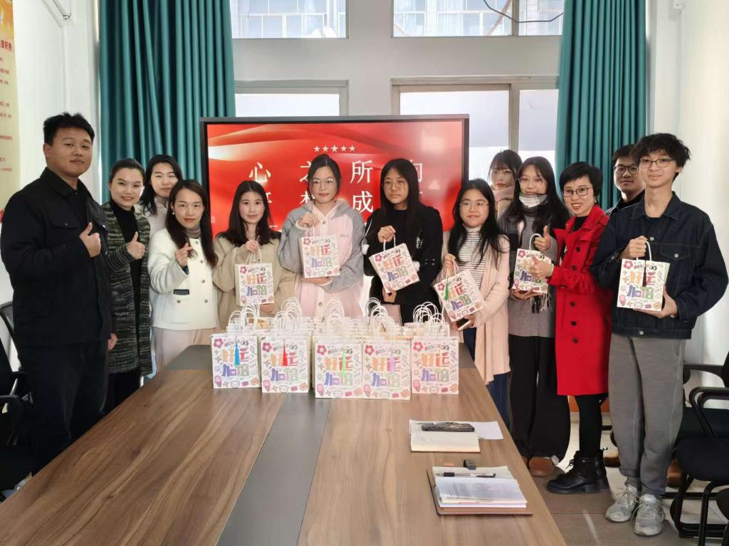 随后,陈小花、肖茵茵代表学院为考研学生送上了精心准备的暖心大礼包。礼包中的每一件物品都承载着学院对同学们的细致关怀和美好祝愿。收到礼包的同学们纷纷表示,这份来自学院的温暖让他们倍感振奋和鼓舞,更加坚定了自己考研上岸的决心和信心。