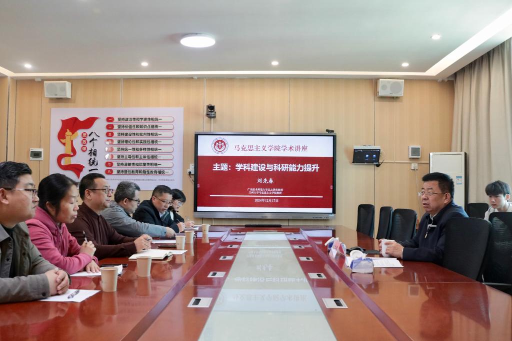 12月17日,达之讲座教授刘先春应邀到马克思主义学院作题为《学科建设与科研能力提升》的学术讲座,讲座由马克思主义学院院长李尚旗教授主持。