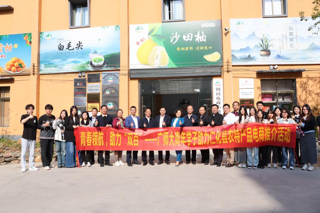 又讯,近期学校几支学生直播团队,以“线上电商直播+线下地推直播”结合方式,联合开展了主题为“青春领航·助力‘双百’”广师大青年学子助力仁化县农特产品活动。共销售出扶溪大米1万多斤、丹霞贡柑4000多斤以及仁化白毛茶、五指毛桃等仁化县农特产品,销售额达到10万余元,充分发挥了电商和直播在助农方面的优势。