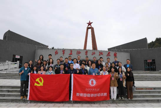11月20日,按照培训安排,学校第二期教师国情研修培训班(服务“双百”系列)于当天开展革命传统教育和爱国主义教育,通过运用韶关丰富的红色资源开展党史、国情、社情教育,增强参训教师爱国爱党、报效祖国、奉献人民的责任感和使命感。学校人事处副处长赵振有和全体学员先后赴红军长征粤北纪念馆、铜锣岭红军长征战斗遗址、双峰寨等地红色文化教育基地进行体验式参观学习。